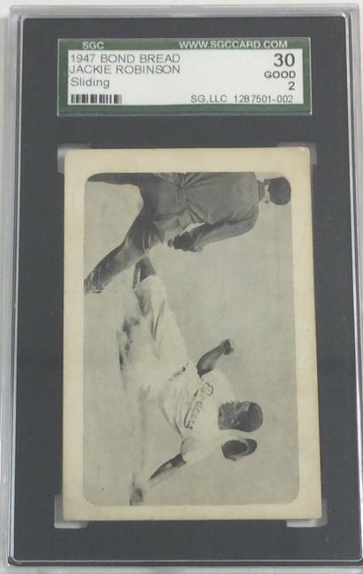 "Bread Bonds Jackie Robinson Sliding" Rookie Baseball Card is Good Condition "30 SGC 2"