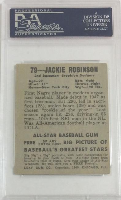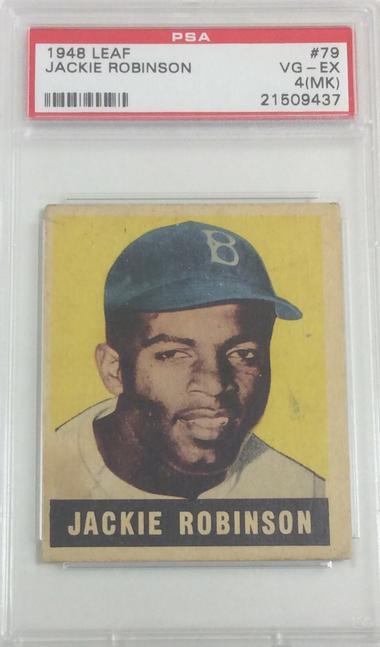 1948 Leaf Jackie Robinson Rookie Excellent condition of PSA 4(mk) is a vintage memorabilia item.